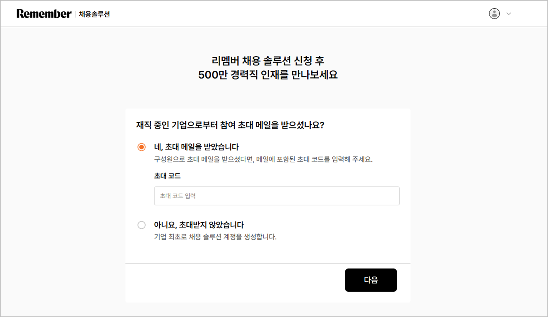 - 처음 채용솔루션을 이용하는 경우: '아니요, 초대 받지 않았습니다' 선택