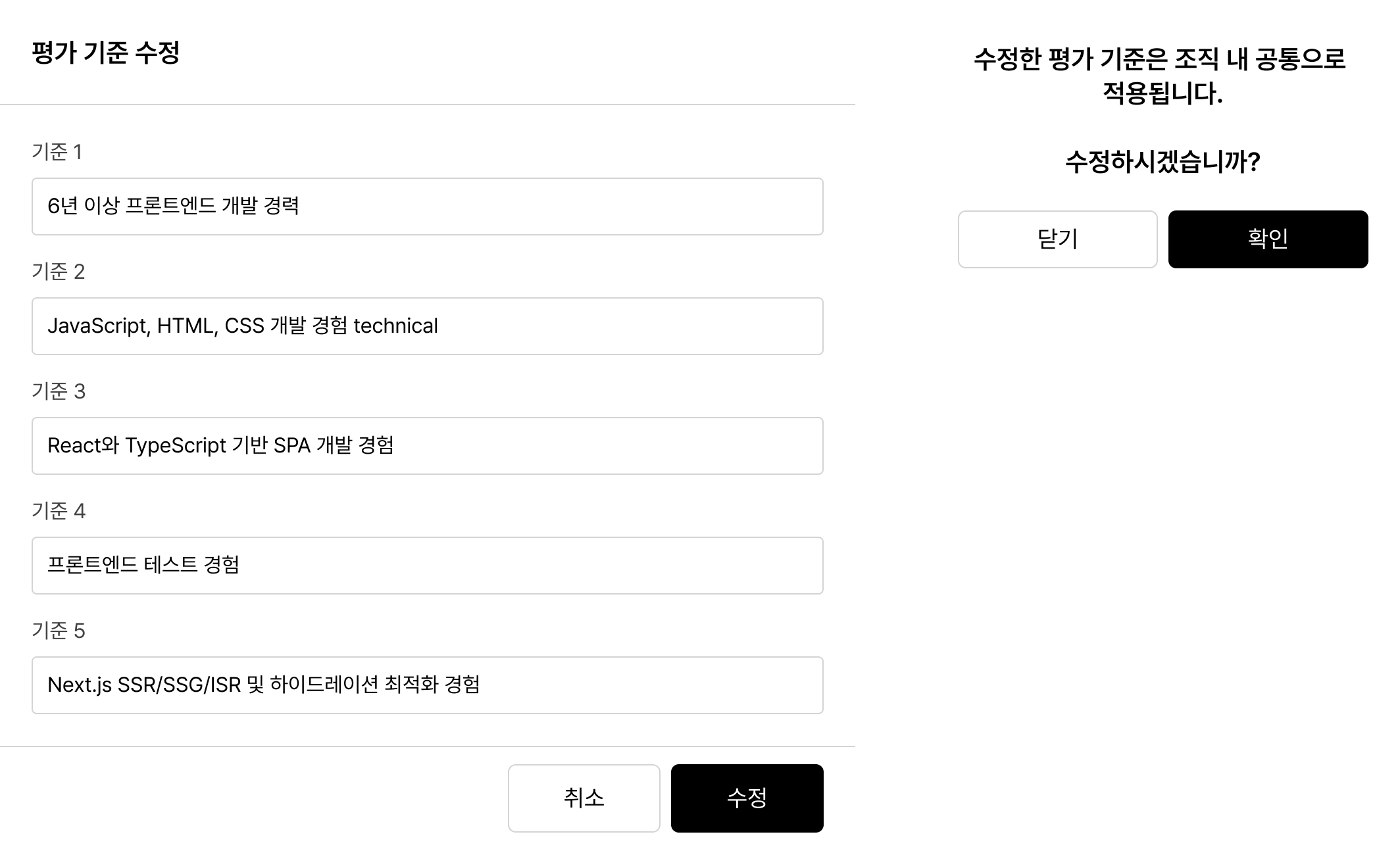 평가 기준을 수정할 경우, 조직 전체에 공통으로 적용되니 유의해 주세요.