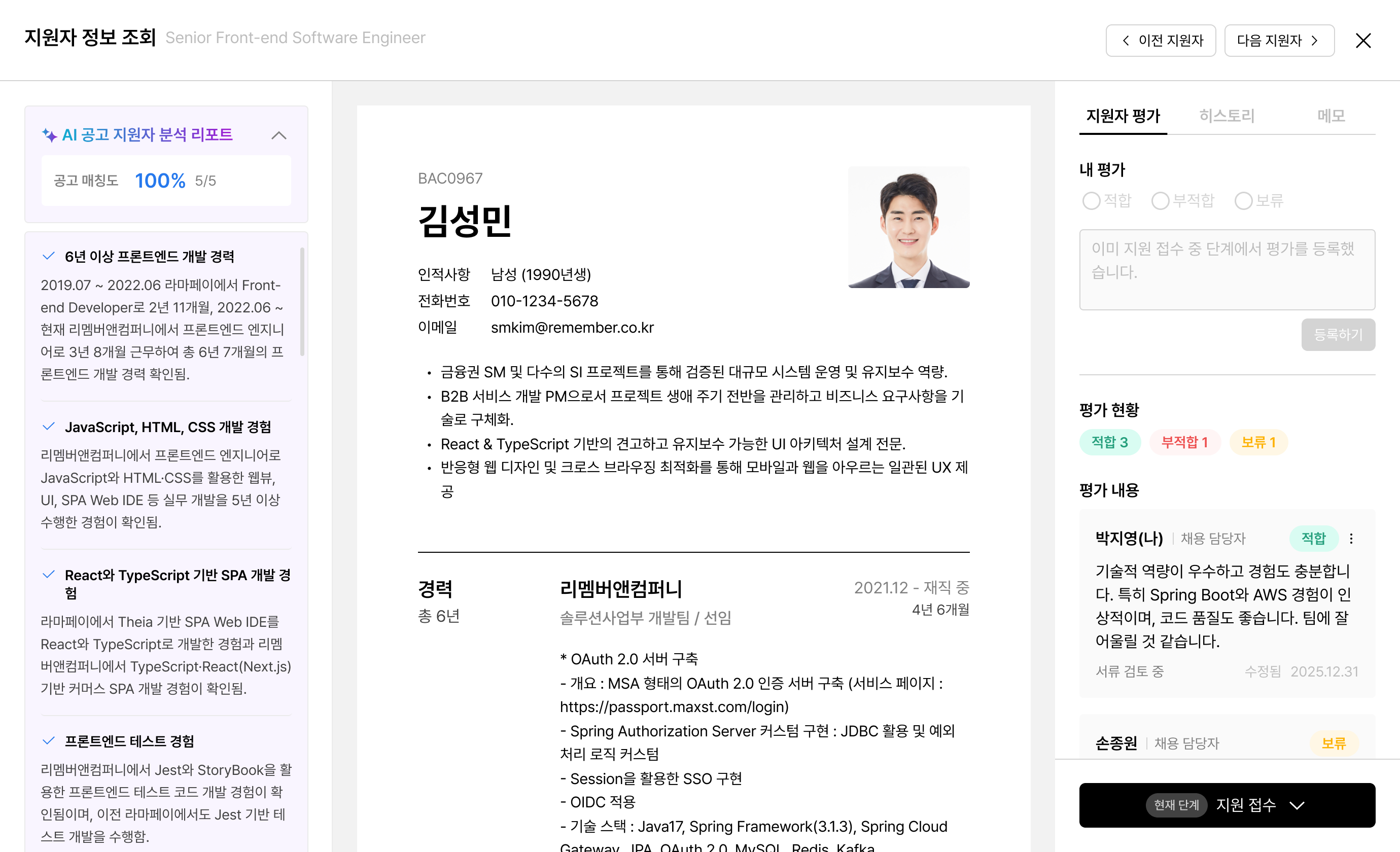 분석 결과는 스크리닝 참고용으로 활용해 주시고, 전형 결과는 내부 합의를 통해 신중히 결정해 주세요.리멤버 AI는 계속 발전하고 있습니다. 평가 결과에 이상이 있는 경우 문의사항 혹은 지원자 상세 분석 리포트 하단의 창구를 통해 의견 남겨 주세요!